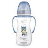 Долговечная, безопасная, крепкая бутылочка из закаленного стекла, с мерной шкалой. Соответствует самым высоким стандартам качества. Бутылочку можно стерилизовать разными способами: в кипящей воде или в паровом стерилизаторе. В комплект входит круглая силиконовая соска быстрого потока. От 12 месяцев.