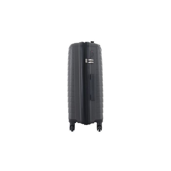 Чемодан оснащен легкой алюминиевой телескопической ручкой, которая фиксируется аж в четырех положениях по высоте. "Утопленный" кодовый замок призван защитить содержимое вашего чемодана, а также не выступает над корпусом, следовательно его невозможно случайно повредить при транспортировке чемодана. Корпус выглядит как глянцевый, однако большая его часть имеет мелкий узор, скрывающий микроцарапины в процессе эксплуатации.