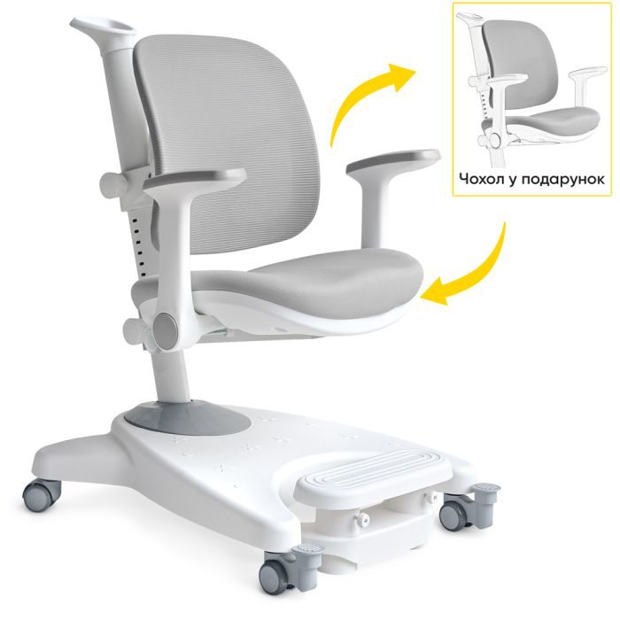 • Подставка для ног с регулировкой по высоте (14-21 см): Дополнительная поддержка для ног, регулируемая по высоте, обеспечивает комфорт даже для самых маленьких пользователей.