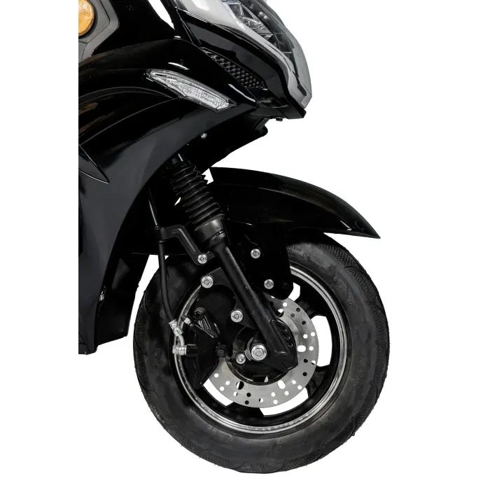 Электроскутер способен перемещаться как городскими магистралями, так и ухабистыми сельскими дорогами, или старыми избитыми улочками, благодаря тому, что он оснащен мягкой задней подвеской и передней амортизации вилкой. Надежное сцепление с дорогой могут гарантировать только достаточно цепкие и чувствительные тормоза, которые также позволяют комфортно и безопасно выполнять плавное и аварийное торможение.