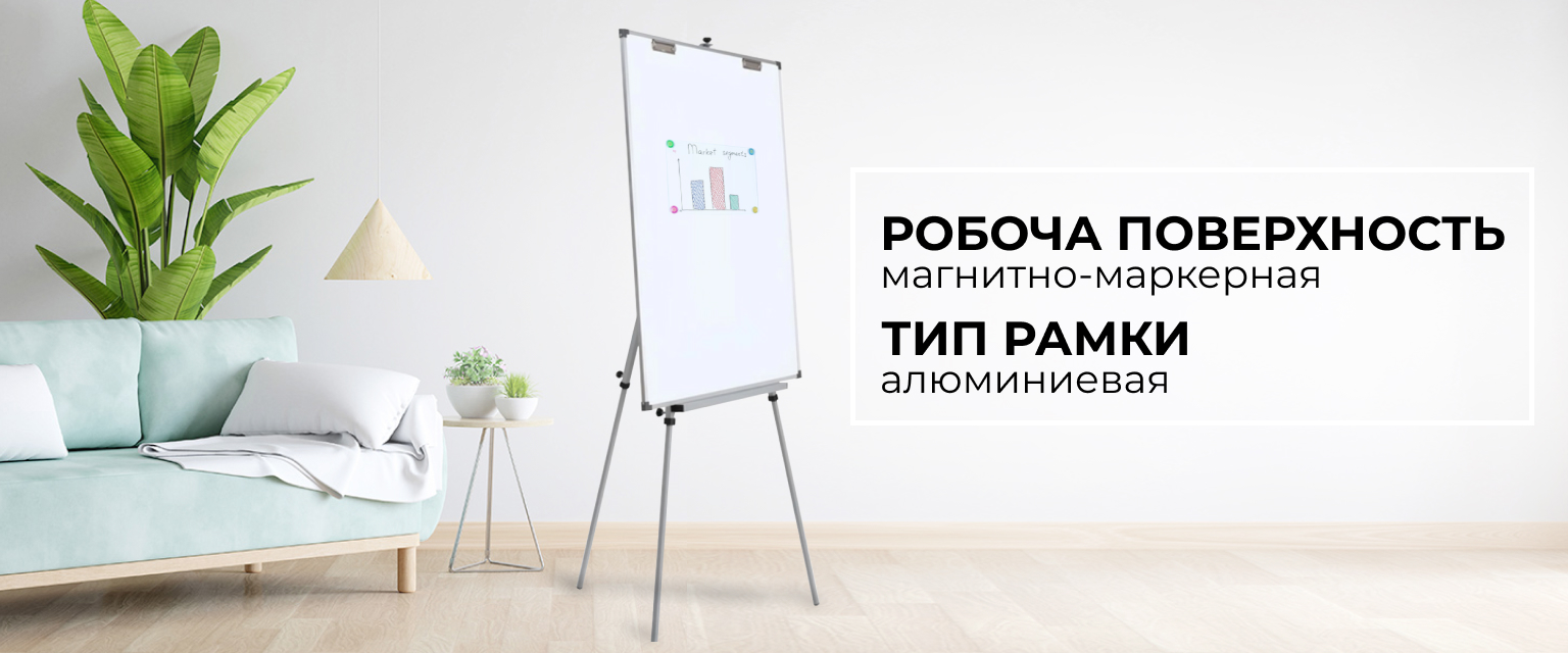 Труба 40х20 выполняет две функции: фиксирует флипчарт и служит полочкой для принадлежностей.