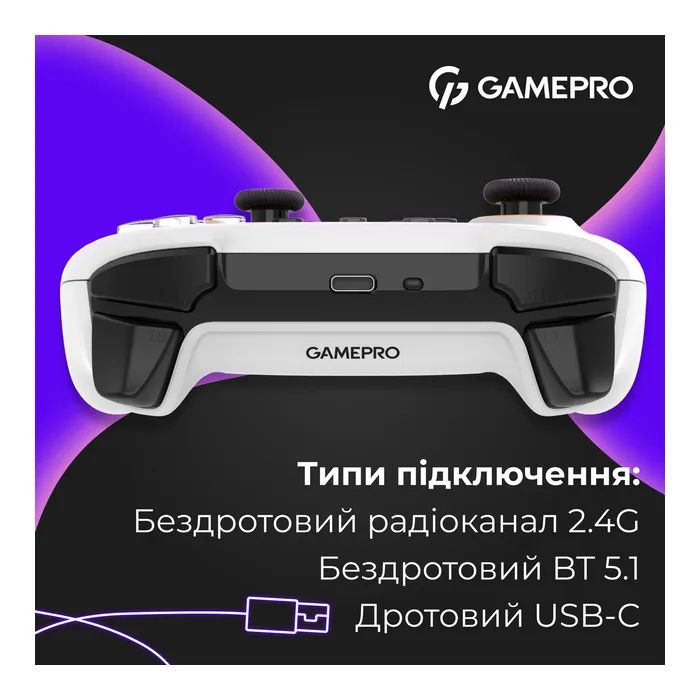 Геймпад GamePro GPX13W 2.4G/BT 5.1/USB/PC/iOS/Android RGB White (GPX13W)