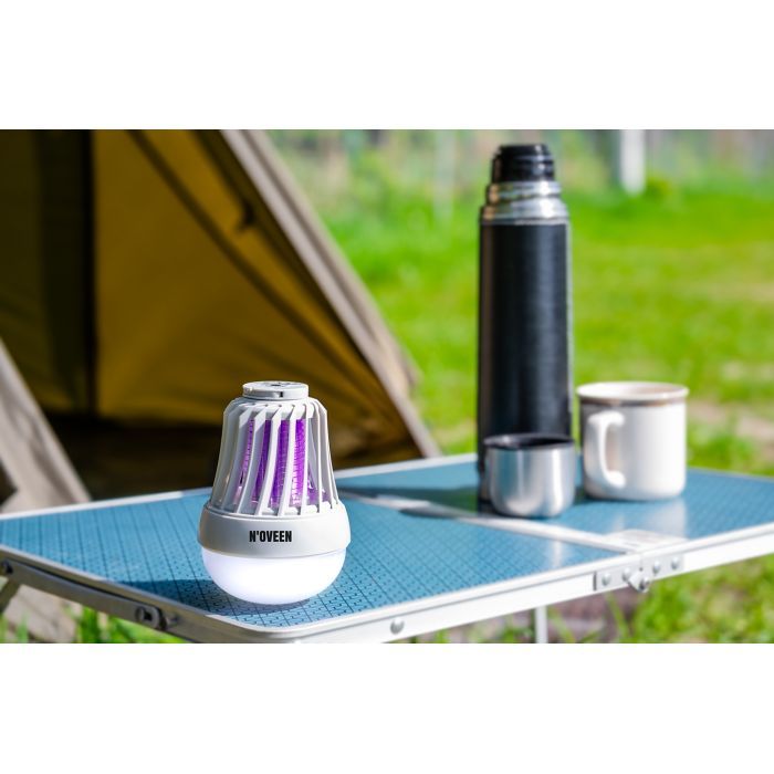 2 в 1: осветительная туристическая лампа и уничтожитель насекомых. Работает в трех режимах: яркий свет, приглушенный свет и/или уничтожитель насекомых. Инсектицидная лампа Noveen IKN823 гарантирует вам ночной отдых без комаров и мошек, а также светодиодный осветительный прибор, который можно подвесить на крючок-держатель или установить на столе.