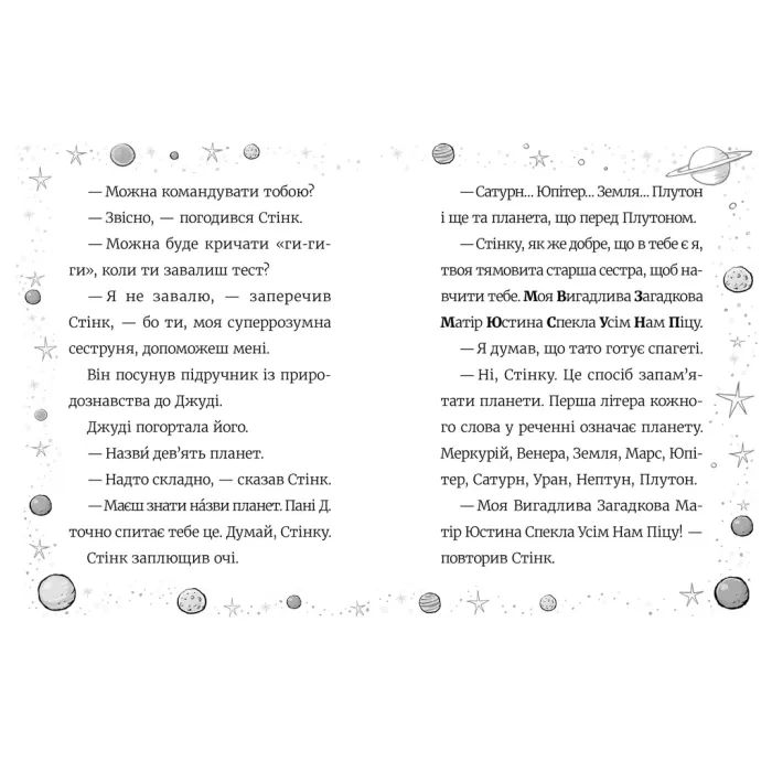 Так что действие этой повести происходит тогда, когда Плутон только что изъяли из перечня основных планет Солнечной системы. А Стинк с друзьями решил за него вступиться. Ведь не важно, малый ты или большой, главное, что ты планета.