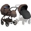 Подножка также поддается регулировке, что позволяет создать полноценное спальное место. Для комфорта малыша коляска комплектуется объемным капюшоном со смотровым окошком и карманом для мелочей. Внутренняя обивка сидения выполнена из перфорированного материала, отлично пропускающего воздух, внешние чехлы изготовлены из эко-кожи. Текстиль обеспечивает необходимый микроклимат для ребенка. Обивка под кожу смотрится очень стильно и богато, плюс такой материал практичен в эксплуатации. Внутренние 5-ти точечные ремни с мягкими накладками на плечи фиксируют ребенка от выпадения.