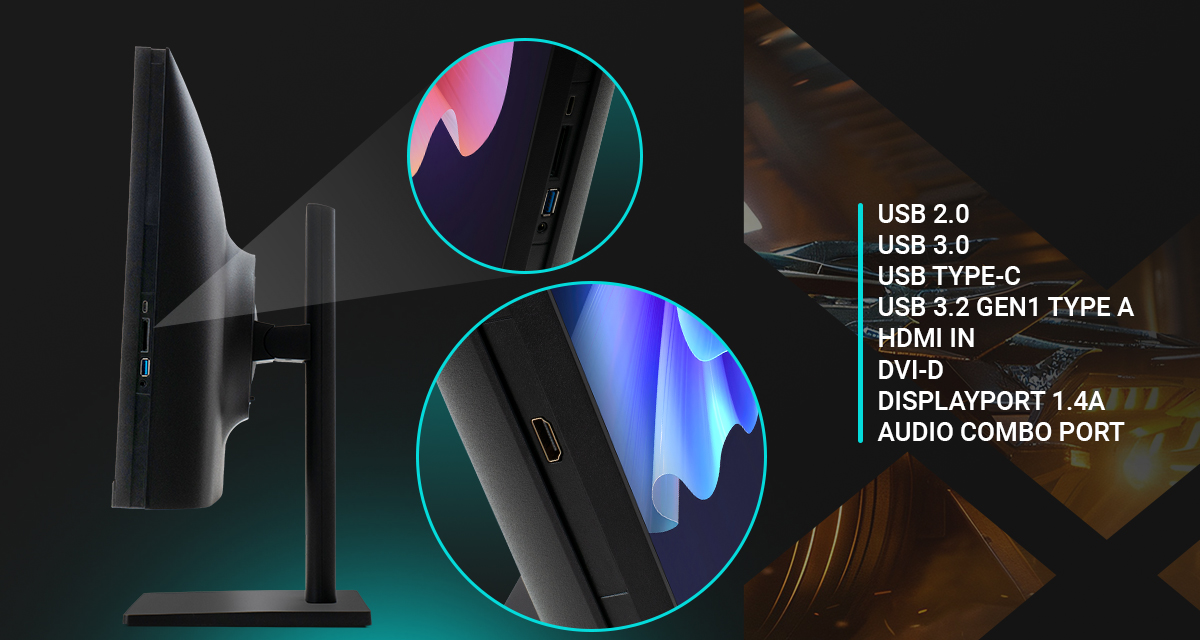Компьютер оборудован разнообразными интерфейсами, среди которых DisplayPort, USB 3.0 и USB Type-C, что позволяет подключать несколько устройств одновременно. Возможность регулирования наклона, высоты и поворота экрана (Pivot, Swivel) делают моноблок максимально удобным в использовании. Возможность крепления VESA добавляет гибкости в выборе размещения, что особенно удобно в небольших рабочих пространствах.