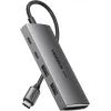 Удобный хаб черного цвета с четырьмя портами USB 3.0 и кнопками выключения. Длина кабеля составляет 25 см.
