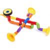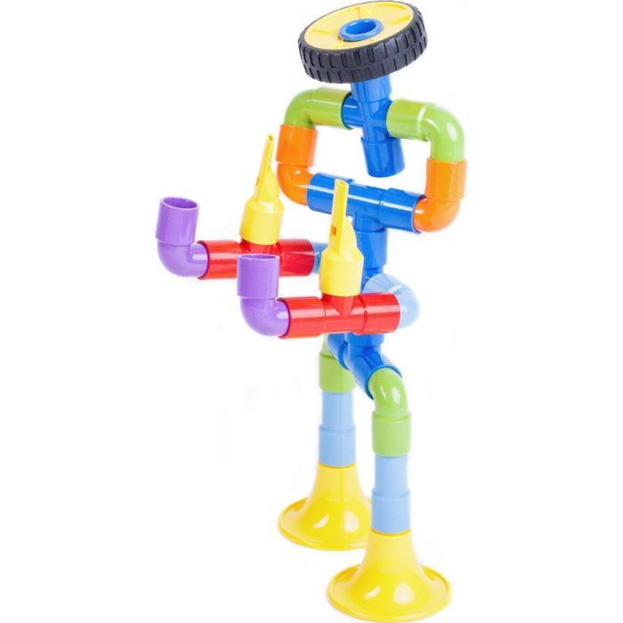 Разнообразие деталей позволяет создать буквально всё, что может представить детское воображение: от машинок и лабиринтов до роботов и домов. Особенностью этого конструктора является его способность трансформироваться в водный трубопровод — налейте воду и проверьте герметичность вашей конструкции!