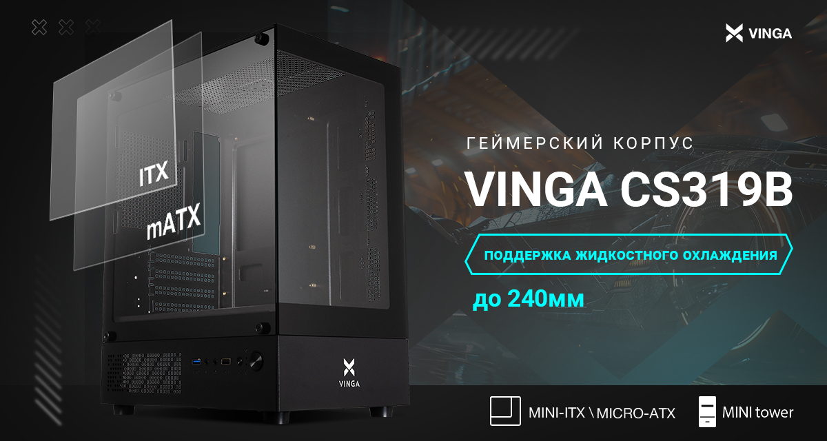 Охлаждение является еще одним существенным преимуществом Vinga CS319B. Корпус рассчитан на установку дополнительных вентиляторов: один 12-см вентилятор можно установить сзади, два 12-см – сверху. Для более требовательных пользователей поддерживается жидкостное охлаждение с возможностью установки 240-мм радиатора сверху, что обеспечивает оптимальную температуру даже под высокими нагрузками.