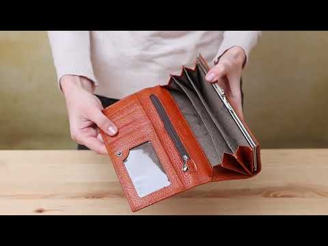 Горизонтальный женский кожаный кошелек BALIYA 18980 в оранжевом цвете изготовлен из натуральной кожи, что обеспечивает долговечность и приятные тактильные ощущения.