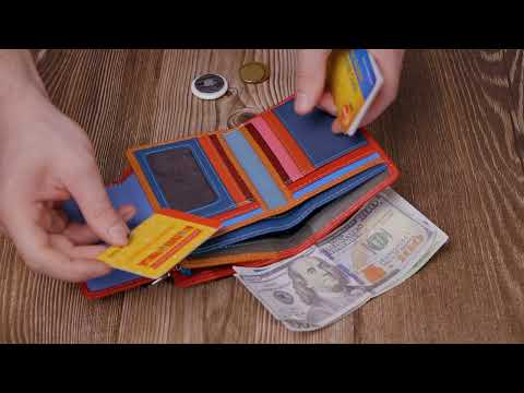 Внутреннее оформление отличается яркой расцветкой и включает два отделения для купюр, девять слотов для карт, два скрытых кармана и монетницу на молнии.