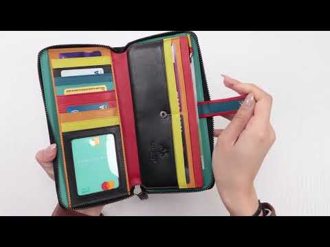 Женский кошелек Visconti STR5 Corfu (Black Multi) — это стильный и функциональный аксессуар, изготовленный из натуральной кожи. Его матовая фактура и черный цвет с яркими цветными полосами придают ему оригинальность и элегантность.