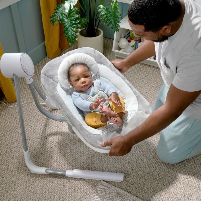 Кресло-качели Ingenuity "AnyWay Sway-Spruce" с режимом вибрации и звуковыми эффектами разработано для детей от рождения и до достижения ими веса 9 кг.