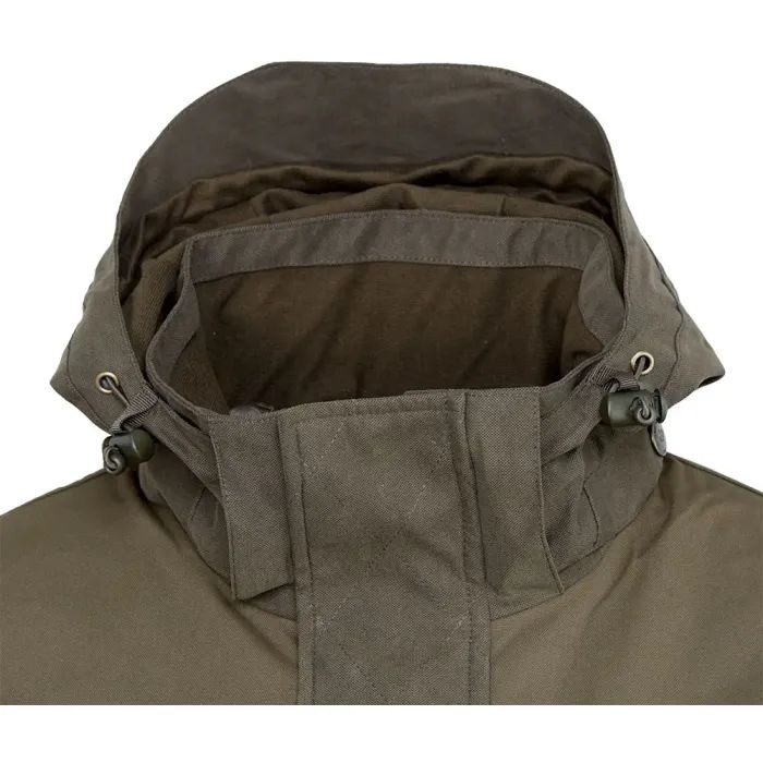Абсолютно бесшумная, теплая и водонепроницаемая куртка для охоты в позднеосенний и зимний период. Материал верхней ткани представляет из себя 100% полиэстер, обработанный защитным слоем Teflon®, для дополнительной защиты от воды и грязи. Ткань имеет совершенно бесшумную поверхность. Благодаря своему компактному переплетению, верхняя ткань очень прочная и устойчивая к разрывам и истиранию. Внутренняя куртка выполнена в виде теплой пуховой подкладки и полностью отстегивается от внешней куртки. Ее можно носить как отдельную куртку, так и в качестве утеплителя-подстежки. Благодаря уникальной мембране Maple-Tex® куртка полностью непродуваемая и водонепроницаемая, и в то же время дышащая. Куртка утеплена плотной подкладкой и имеет водонепроницаемый капюшон, который можно убрать в воротник или полностью снять. Плечи усилены водостойким материалом Алькантара. Много функциональных карманов на внешней стороне и внутри, включая большой карман для дичи на пояснице.