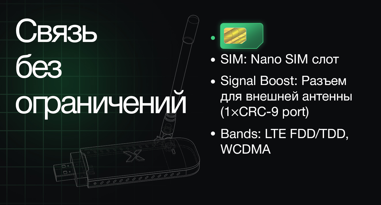 Даже там, где сигнал мобильного оператора нестабилен, Vinga Stick 4G M101 остается в игре. Устройство оснащено разъемом для внешней антенны с интерфейсом CRC9. Это позволяет подключить переносную или мощную стационарную антенну для значительного усиления приема. Такое решение незаменимо для загородных домов, дач или удаленных объектов, где стандартного встроенного модуля недостаточно. Будьте онлайн даже в зонах со слабым покрытием сети.
