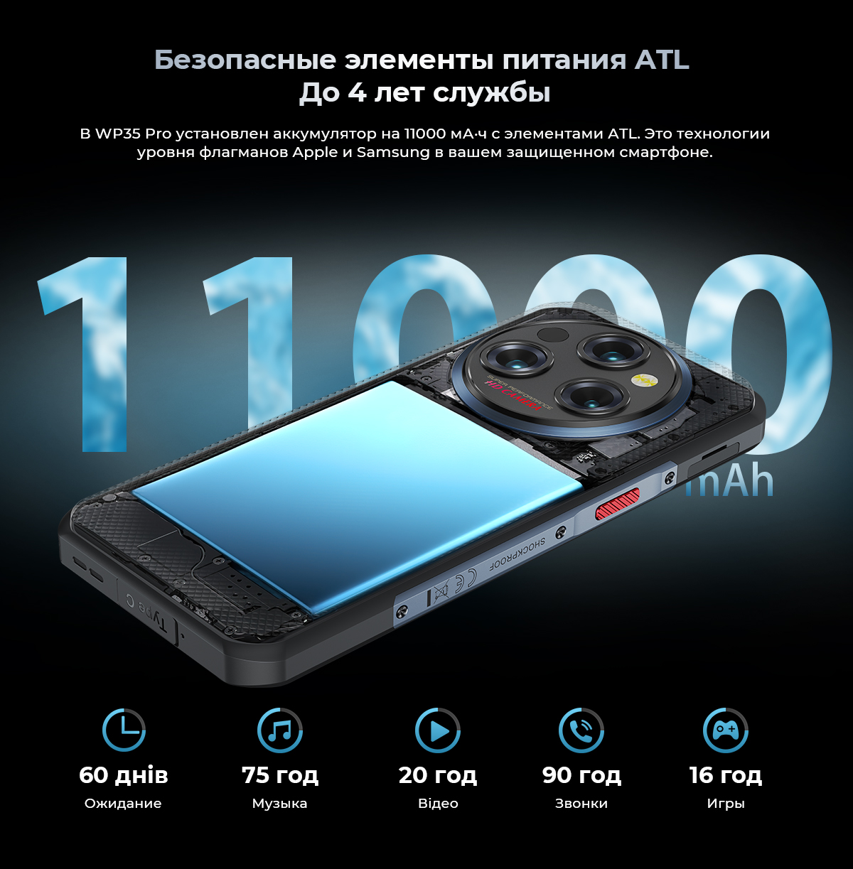 WP35 Pro внедряет стандарты надежности флагманских брендов благодаря использованию аккумуляторов ATL. Запас энергии в 11000 мА·ч рассчитан на 4 года интенсивной эксплуатации, предлагая до 60 дней автономности в режиме ожидания или 16 часов гейминга. Несмотря на рекордные показатели питания, устройство сохраняет свою уникальную эргономику и толщину 14.9 мм. Быстрая зарядка 33 Вт и энергоэффективная архитектура делают его идеальным спутником для тех, кто ценит легкость вместе с гарантированной работоспособностью в любой точке мира.