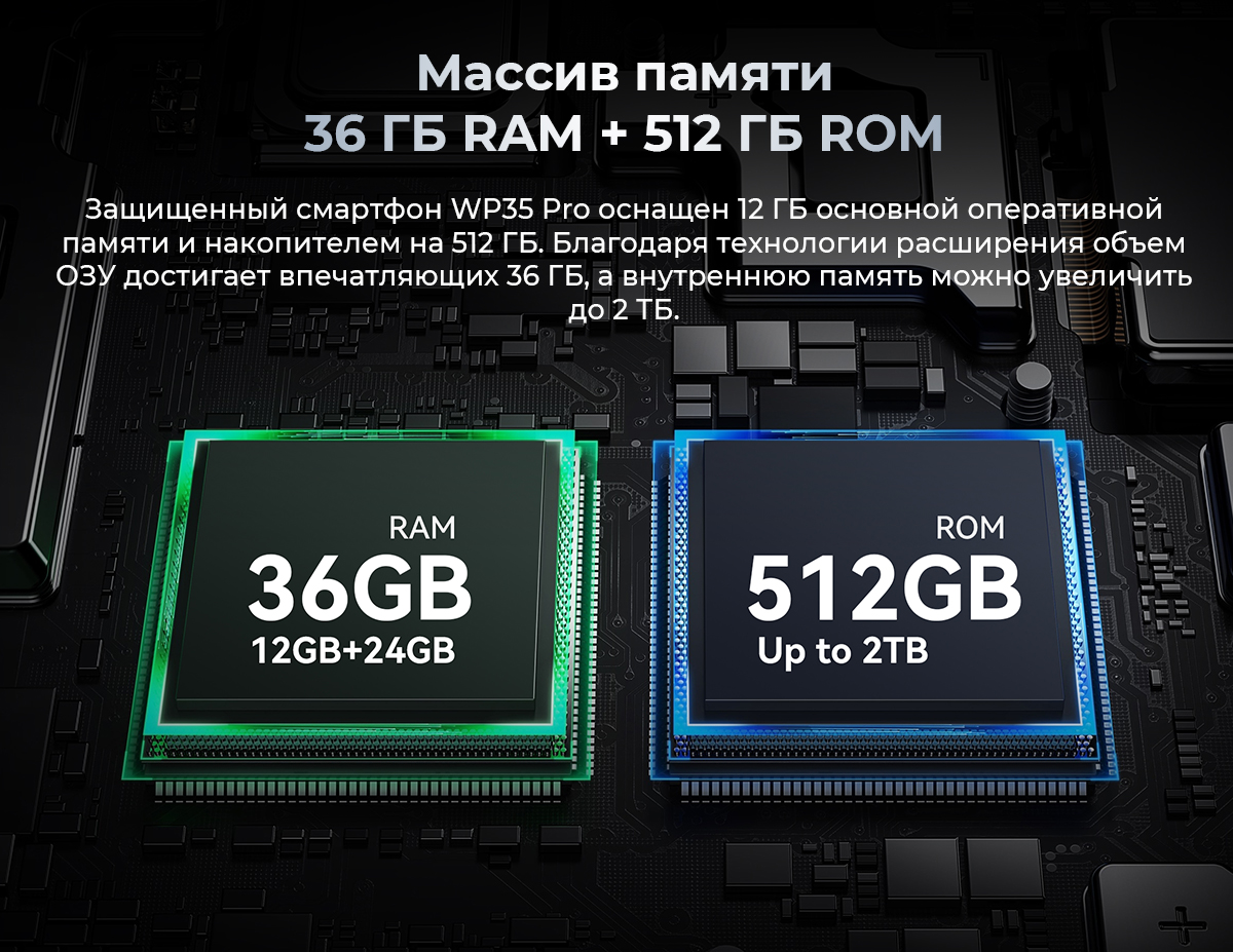 OUKITEL WP35 Pro меняет представление о многозадачности, предлагая гибкую систему оперативной памяти. Базовые 12 ГБ ОЗУ могут быть расширены до колоссальных 36 ГБ с помощью виртуальных технологий, что исключает любые подтормаживания системы. Внутренний накопитель на 512 ГБ легко вмещает огромные медиатеки, а поддержка карт MicroSD до 2 ТБ делает пространство практически бесконечным. Такая конфигурация в паре с мощным процессором превращает смартфон в портативную рабочую станцию для самых требовательных пользователей.