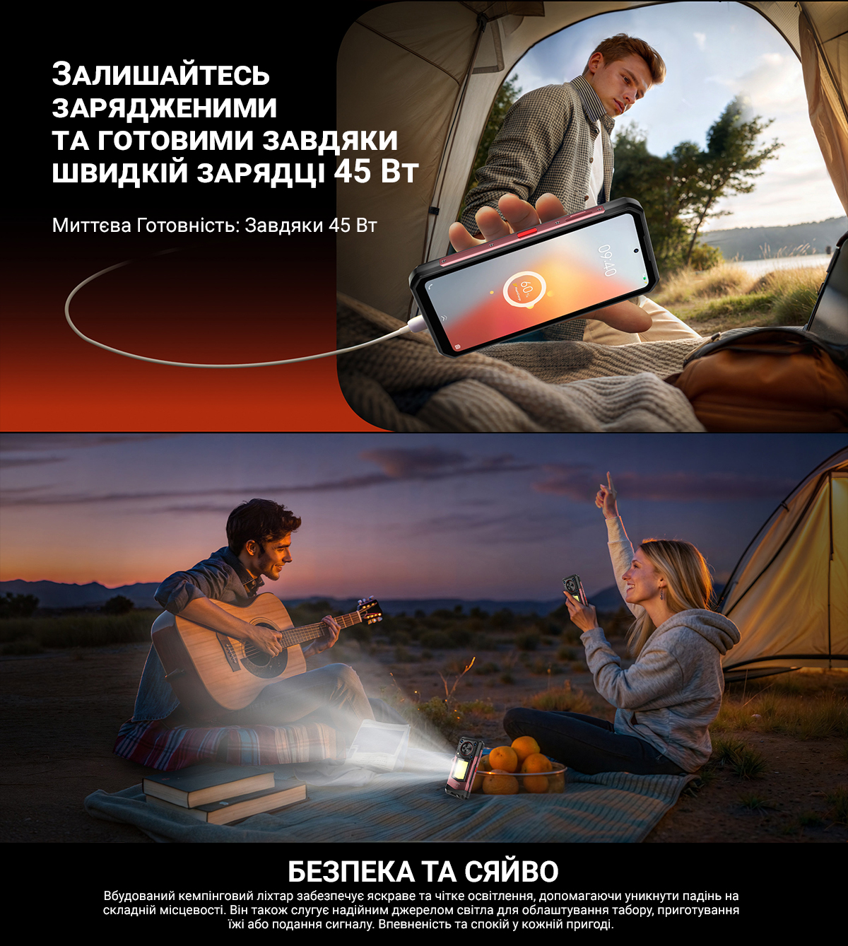 Этот смартфон является идеальным решением для тех, кто ценит время и безопасность во время приключений. С одной стороны, он оснащен сверхбыстрой зарядкой мощностью 45 Вт, которая быстро возвращает к жизни его емкий аккумулятор. Это критически важно, ведь долгие ожидания у розетки теперь остались в прошлом: вы всегда будете готовы к новым вызовам без изнурительных перерывов. Даже короткая пауза позволит вам пополнить энергию, чтобы оставаться продуктивным и на связи. С другой стороны, встроенный яркий кемпинговый фонарь становится вашим незаменимым помощником в ночное время. Он обеспечивает чистую видимость в темноте, помогая избежать падений и травм на неровной местности. Кроме того, фонарь выполняет роль надежного источника света для практических задач: вы легко обустроите лагерь, приготовите еду или, в случае необходимости, сможете подать световой сигнал. Сочетание быстрого восстановления заряда и мощного освещения гарантирует вам полную уверенность и спокойствие во время любого вашего путешествия, превращая устройство в поистине универсальный инструмент.