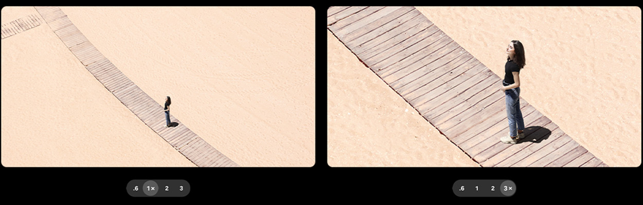 Благодаря сенсору Adaptive Pixel камера обеспечивает зум с оптическим качеством без потери детализации. Трехкратное увеличение 3x реализовано как полноценный оптический зум, тогда как двухкратное 2x обеспечивает зум с оптическим качеством.