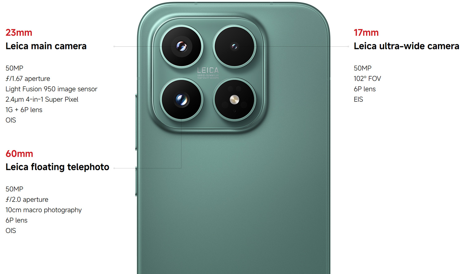 Ультраширокоугольная камера Leica с углом обзора 102° расширяет границы кадра. Она добавляет сценам пространства и динамики, позволяя зафиксировать больше деталей в каждом снимке.