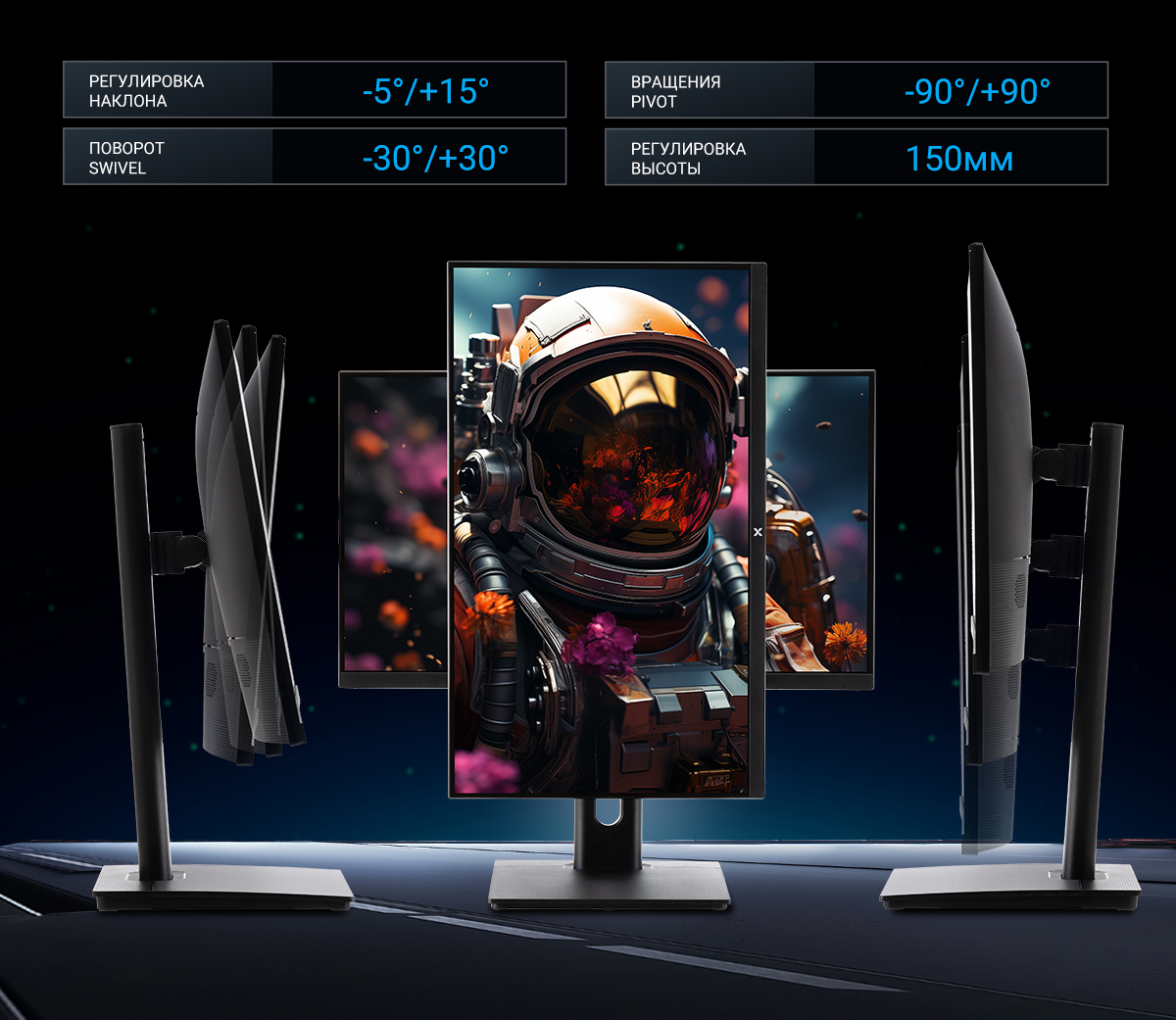 Эта модель разработана так, чтобы подстраиваться под ваши задачи, обеспечивая максимальный комфорт в течение всего дня. Многофункциональная подставка предлагает полную свободу регулировок: вы можете менять высоту экрана в диапазоне 150 мм, наклонять его или поворачивать в стороны (Swivel) на 30°. Особого внимания заслуживает функция Pivot, позволяющая перевернуть дисплей в портретный режим на 90° — идеально для программирования или работы с длинными документами. При необходимости сэкономить место на столе, поддержка стандарта VESA 100x100 мм позволяет легко закрепить монитор на стене или кронштейне.