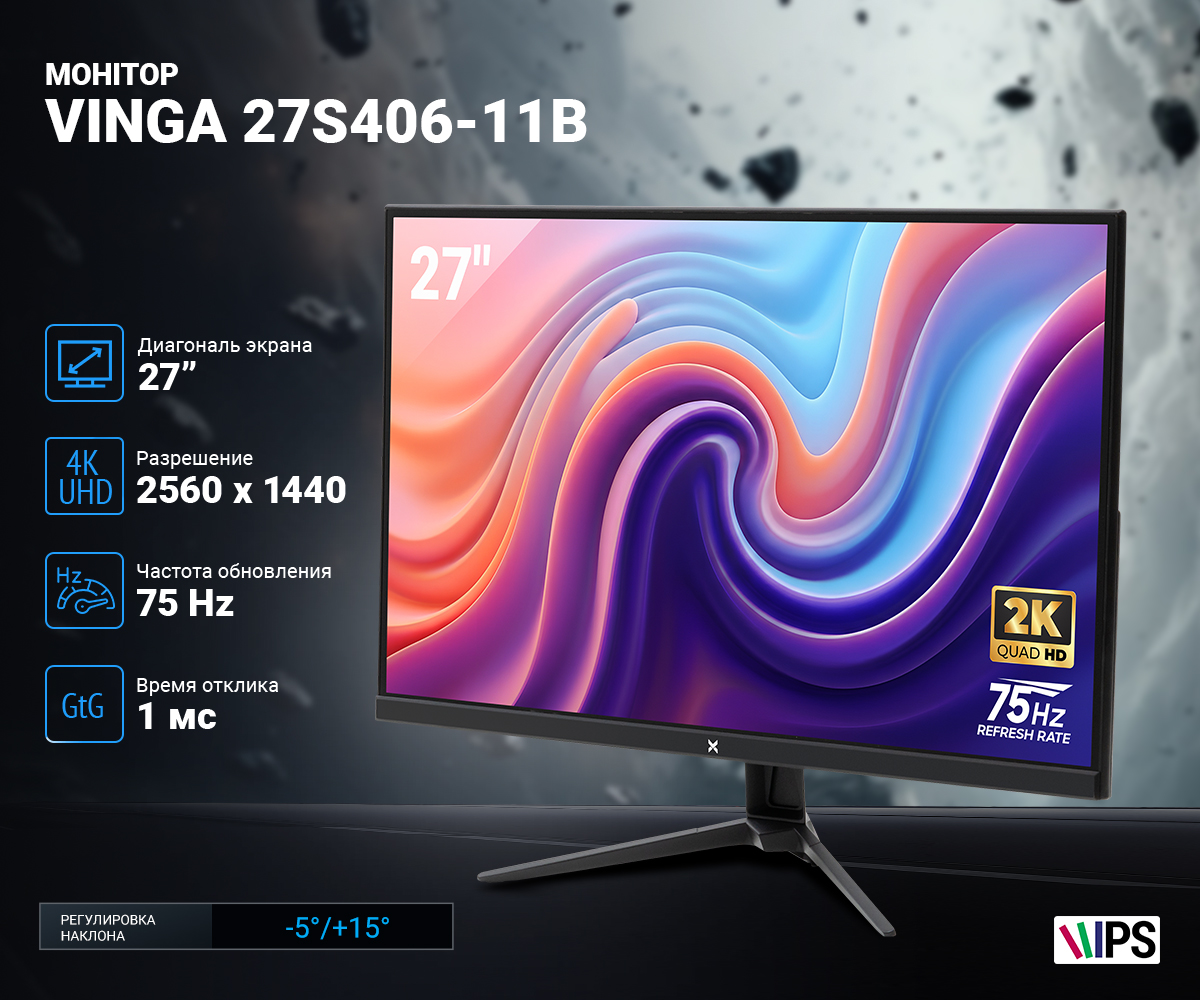 Монитор Vinga 27S207-11B — это идеальный выбор для тех, кто ценит качество изображения и комфорт при длительном использовании. С диагональю дисплея 27 дюймов вы получите потрясающее впечатление от просмотра контента. Благодаря высокому разрешению 2560 x 1440 пикселей, экран обеспечивает невероятно четкие и детализированные изображения. Это идеальный вариант для графических дизайнеров, геймеров или просто любителей мультимедиа, которые ищут отличную производительность в элегантном корпусе.