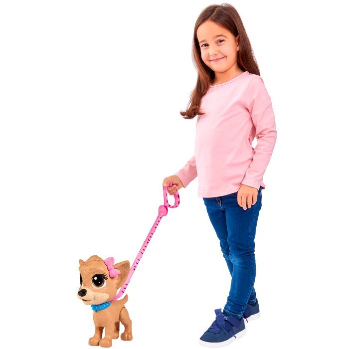Известный бренд Simba представляет невероятную новинку — собачку "Pi Pi Puppy", которую можно поить из бутылочки и выгуливать на поводке. Возьми бутылочку, налей воду и дай попить собачке. Пора собираться на прогулку. Лишь присоедини розовый поводок-рулетку к модному голубому ошейнику и вперед на прогулку, ей нужно сделать "пи пи". Прогуляйся немного и все получится. Собачка изготовлена из высококачественного пластика. Она имеет большие красивые глаза и розовый бантик возле ушка.