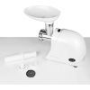 Мясорубка Grunhelm AMG143W мощностью 1400 Вт легко и быстро измельчит разные ингредиенты для ваших блюд. С ее помощью можно получить фарш разной текстуры и консистенции. Для этого предусмотрены две решетки с отверстиями разного диаметра. Для удобной подачи кусочков мяса и других ингредиентов, модель укомплектована пластиковым лотком с широким отверстием и толкателем, что обеспечивает максимальную безопасность в работе. С помощью дополнительных аксессуаров, входящих в комплект, мясорубка пригодится для приготовления колбасок.