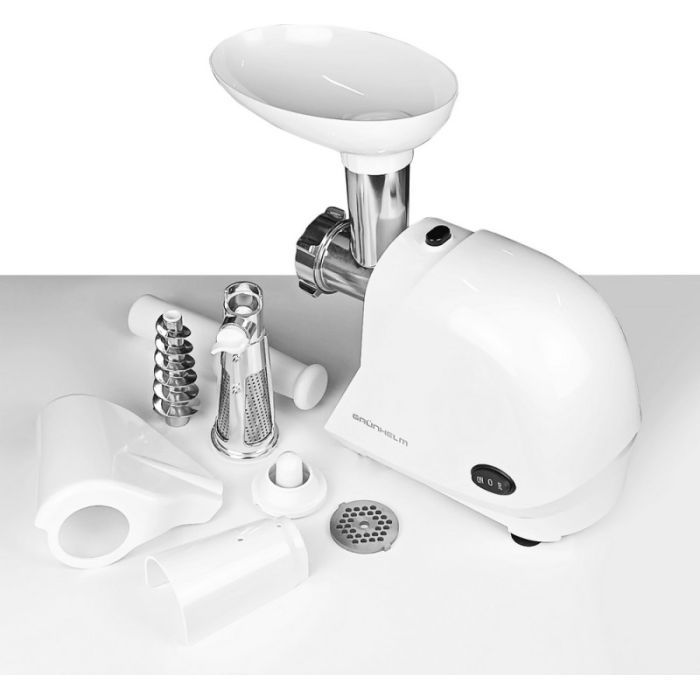 Мясорубка Grunhelm AMG143WJ сочетает в себе мощность, функциональность и стильный дизайн, делая ее идеальным выбором для современной домашней кухни.