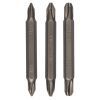 Набор из трех двухсторонних бит длиной по 60 мм — PH1-PH1, PH2-PH2, PH3-PH3. Изготовленные из высококачественной стали, насадки с шестигранным хвостовиком 1/4 дюйма.