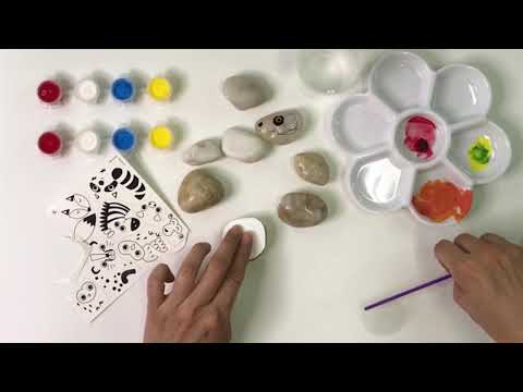 В комплекте: 8 натуральных камней, краски, 1 кисть для рисования, 1 лист с переводными картинками, 13 пластиковых кружков для глаз, 1 палочка для наклеивания и подробная инструкция.