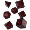 Универсальный набор, состоящий из семи стильных игральных костей – четырёхгранника, шестигранника, восьмигранника, десятигранника, десятигранника с числами второго разряда, двенадцатигранника и двадцатигранника.