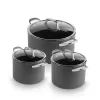 Прозрачная крышка из термостойкого стекла оснащена клапаном для выхода пара, что позволяет следить за приготовлением пищи и выпускать лишний пар, не снимая крышку с ковша. Металлический ободок крышки предохраняет ее от сколов.