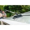 Решение для равномерной и эффективной очистки: насадка с 4 встроенными соплами высокого давления удаляет стойкие загрязнения с различных поверхностей. В зависимости от решаемой задачи ее можно быстро и легко оснастить одной из сменных рамок, входящих в комплект поставки. Щеточная рамка, предназначенная для чистки стен, благодаря щетине по периметру защищает пользователя от брызг воды и, кроме того, позволяет плавно перемещать насадку по поверхности. А для очистки стеклянных поверхностей (например, зимних садов) подходит рамка с падом из микроволокна, который закрепляется на ней липучкой. Его абразивные волокна способствуют лучшему отделению грязи и гарантируют бережную очистку поверхностей.
