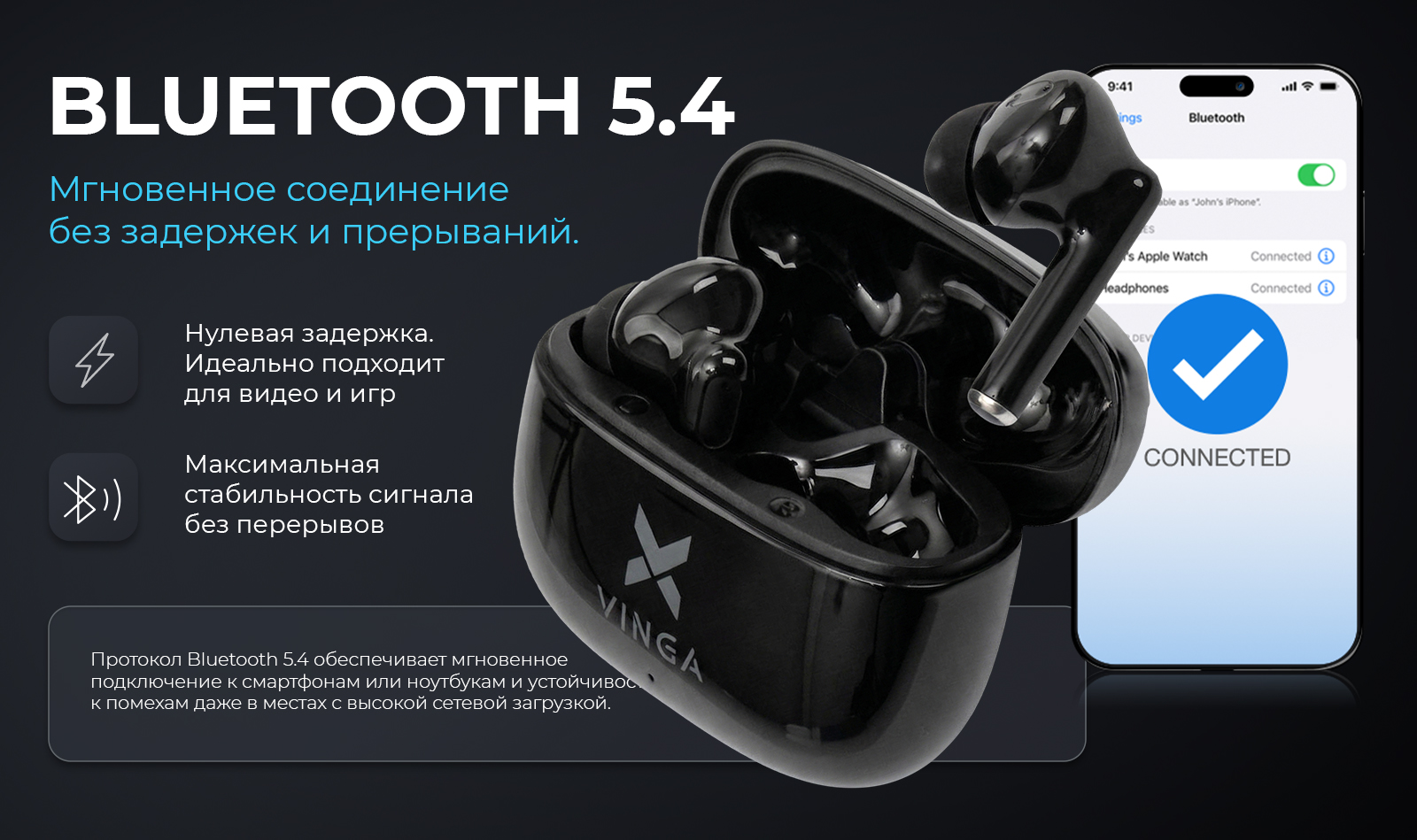 Ощутите преимущества самого современного стандарта связи, который исключает любые задержки или прерывания аудиопотока. Версия Bluetooth 5.4 гарантирует мгновенное соединение с вашим смартфоном или ноутбуком и обеспечивает высокую энергоэффективность. Это критически важно для динамичных игр и просмотра видео, где синхронизация звука и изображения должна быть идеальной. Даже в местах с большим количеством помех вы получаете стабильный сигнал и расширенный радиус действия, что позволяет свободно перемещаться по комнате без потери качества звучания.