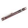 Приводится в рабочее положение клинок с помощью флиппера или двустороннего шпенька, и надежно фиксируется стальной пластиной замка Liner Lock.