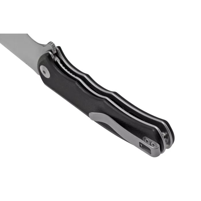 Складной нож перочинный, его особенность – в прочной рукояти эргономичной формы и клинке разновидности drop point. Представляет собой уменьшенную версию известного ножа Praxis. Это очень практичный и удобный нож, который легко носить с собой в кармане. Клинок изготовлен из стали D2. Это прочная инструментальная сталь, которая хорошо сохраняет остроту. Лезвие имеет красивую черную отделку.
