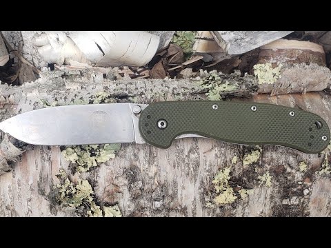 Нож обладает клинком универсальной формы Drop Point со спусками от обуха, что позитивно повлияло на его режущие способности.Простой и крепкий замок Frame Lock обеспечивает надежную фиксацию клинка для работы в тяжелых условиях.