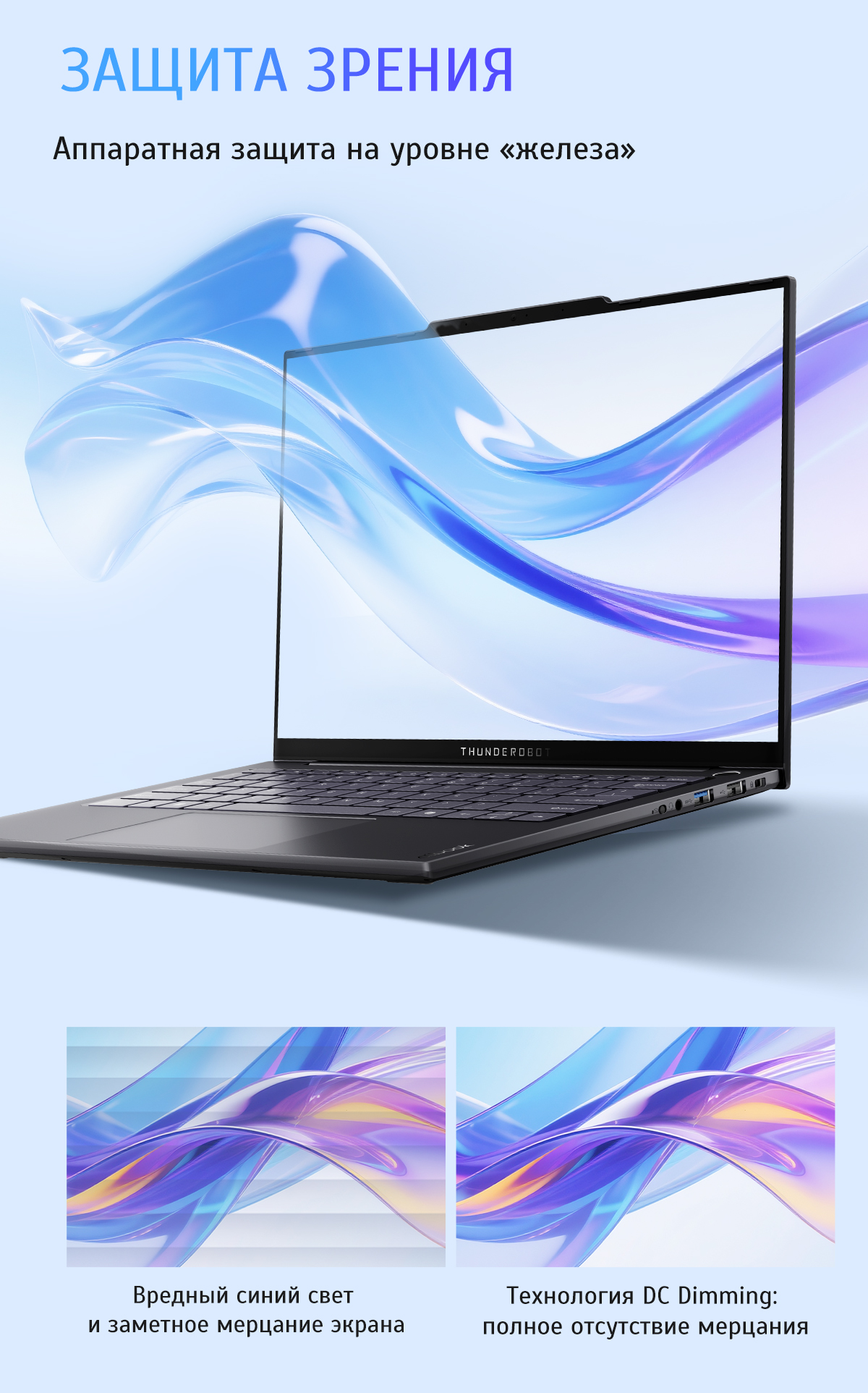 Длительная работа за монитором требует особого внимания к здоровью глаз, поэтому в ноутбуках Thunderobot реализован комплексный подход к безопасности зрения. Аппаратное решение для фильтрации вредного синего спектра позволяет снизить нагрузку на глаза, не искажая при этом естественные цвета изображения, что часто случается при использовании только программных фильтров. Технология DC Dimming полностью устраняет мерцание экрана (flicker) на любых уровнях яркости, что является критически важным фактором для предотвращения сухости глаз и головных болей во время длительных сессий. Такой уровень защиты делает устройство идеальным выбором для программистов, копирайтеров и дизайнеров, проводящих за экраном более 8 часов в сутки. Выбирая этот ноутбук, вы инвестируете не только в производительность, но и в собственное самочувствие, сохраняя высокую концентрацию в течение всего дня.