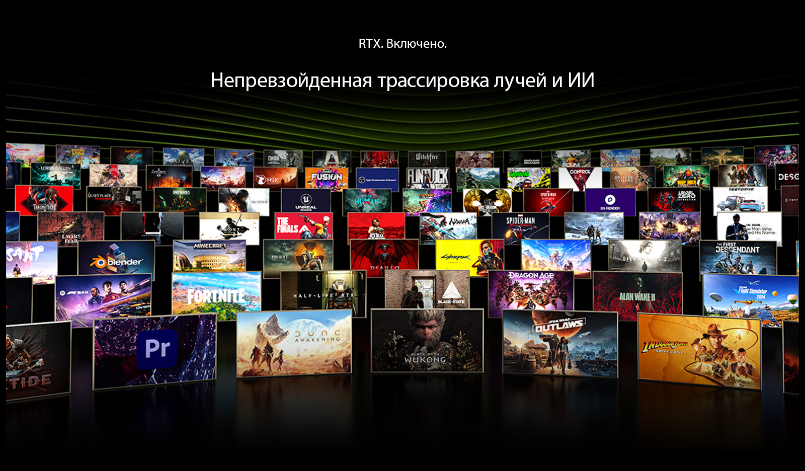 RTX представляет собой самую совершенную платформу для технологий трассировки лучей и нейронной визуализации, которые меняют подход к играм и созданию цифровых продуктов. Более 700 игр и приложений уже используют RTX для обеспечения реалистичной графики и высочайшей производительности с функциями ИИ, такими как многокадровая генерация DLSS Multi Frame Generation.