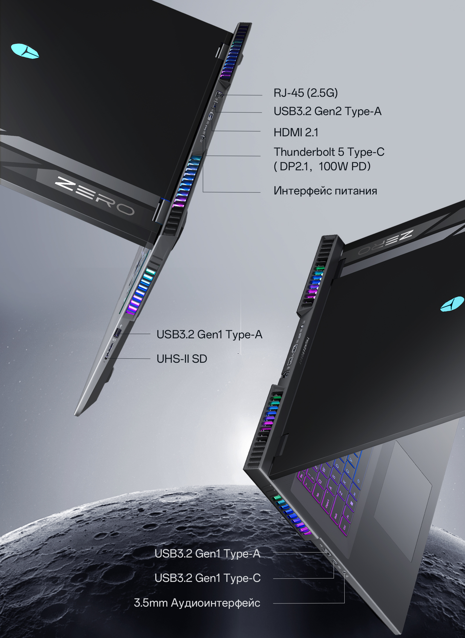 В Thunderobot Zero 18 Pro также учтены детали, которые делают его использование еще более приятным. Подсветка клавиатуры позволяет удобно играть даже в темноте, делая ноутбук мозговым центром вашей игровой вселенной.