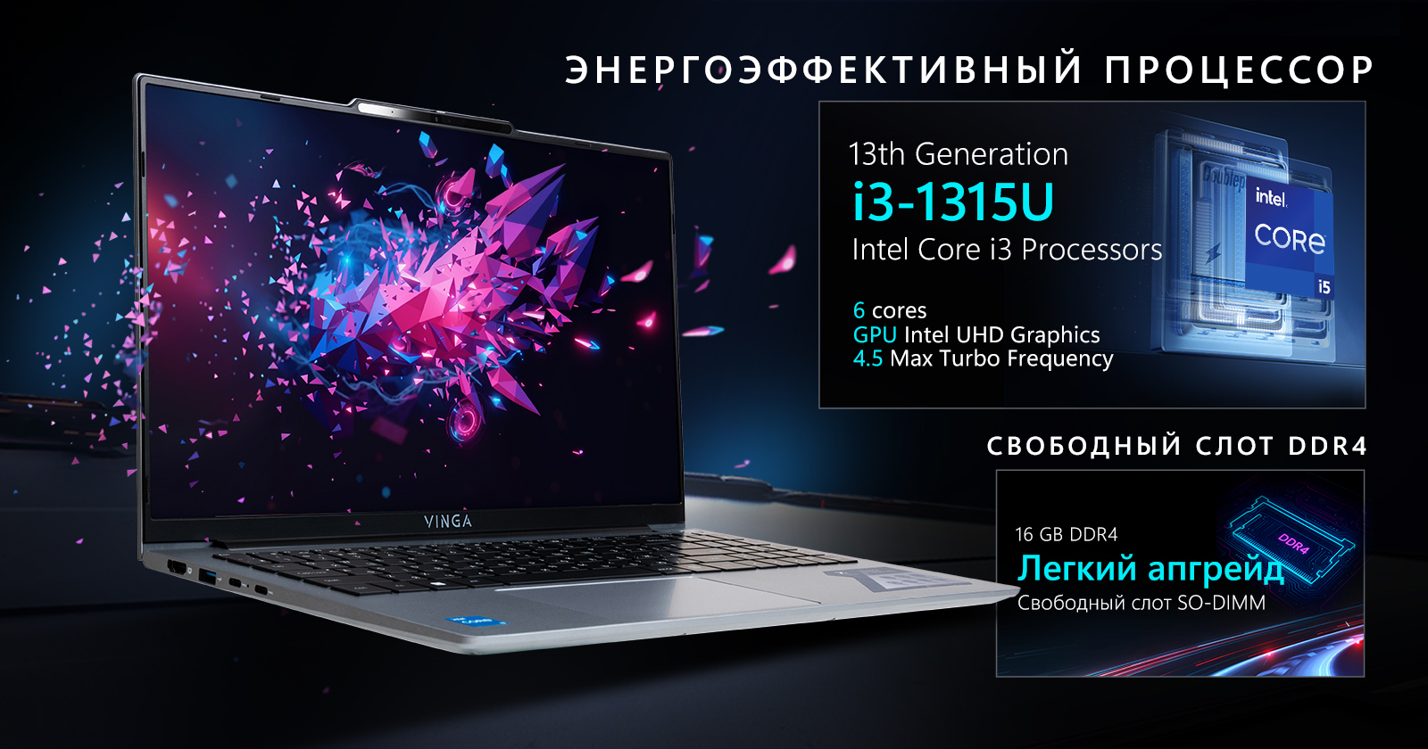 В основе ноутбука лежит энергоэффективный процессор Intel Core i3-1315U 13-го поколения. Эти чипы обеспечивают высокую вычислительную мощность, гарантируя быструю и стабильную работу при многозадачности, обработке объемных документов и использовании профессиональных офисных программ. Iron S151 оснащен двумя слотами SoDimm DDR4 3200 МГц, при этом один из них СВОБОДЕН. Это значительное преимущество, так как позволяет пользователю в будущем легко и экономично расширить оперативную память, заметно увеличив производительность устройства.