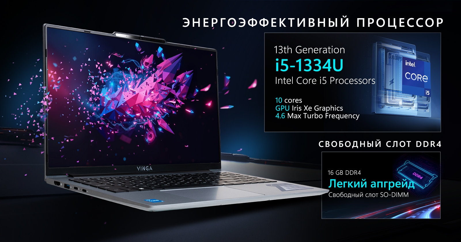 Основное преимущество Vinga Iron S151 — это его производительность. Благодаря процессору Intel Core i5-1334U 13-го поколения с 6 ядрами и частотой до 4.6 ГГц, он легко справляется с многозадачностью. Этот процессор обеспечивает быструю обработку данных и энергоэффективность, что особенно важно для длительного автономного использования.