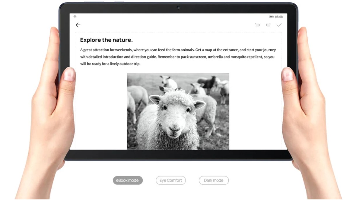 Режим защиты зрения, сертифицированный TÜV Rheinland, позволяет уменьшить воздействие вредного синего света экрана, благодаря чему планшетом комфортно пользоваться на ежедневной основе. Вы также можете выбрать режим электронной книги для удобного чтения, словно вы читаете настоящую бумажную книгу. В ночное время включите Темный режим, и цвета экрана станут более мягкими и менее контрастными, чтобы обеспечить приятный визуальный опыт.