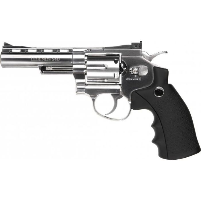 Для аутентичности свинцовые пули Диаболо вставляются в шесть металлических картриджей-патронов, каждый на одну пулю, а ствол нарезной для более точной стрельбы. Целик регулируемый, а фиксатор барабана служит предохранителем при нажатии в противоположном направлении.