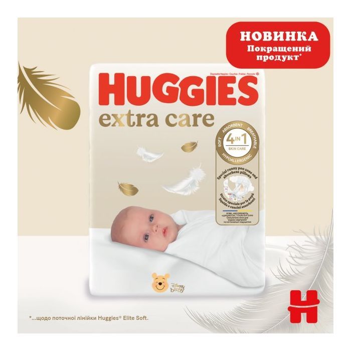 Комфорт вашего малыша — это наш приоритет. Подгузники оснащены мягким эластичным поясом для предотвращения красных следов и раздражений, а индикатор влаги поможет родителям знать, когда настало время поменять подгузник. Неповторимые дизайны от Disney с героями мультфильмов о Винни-Пухе делают каждую минуту волшебной. Huggies Extra Care — это твоя поддержка каждый день!
