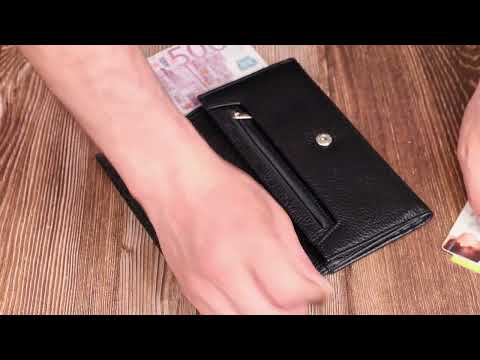 Универсальный кошелек для стильных женщин из натуральной кожи в классическом черном цвете. Аксессуар имеет одно основное отделение, семнадцать карманов для карточек, четыре прилегающих кармана и монетницу. Особенностью данной модели является наличие блока для кредитных карт, который закрывается хлястиком на кнопку. На лицевой стороне, в правом нижнем углу, металлический логотип компании производителя. Если Вы выбрали товар этой фирмы, можете не сомневаться, что изделие прослужит очень долго и не потеряет свой первоначальный вид.