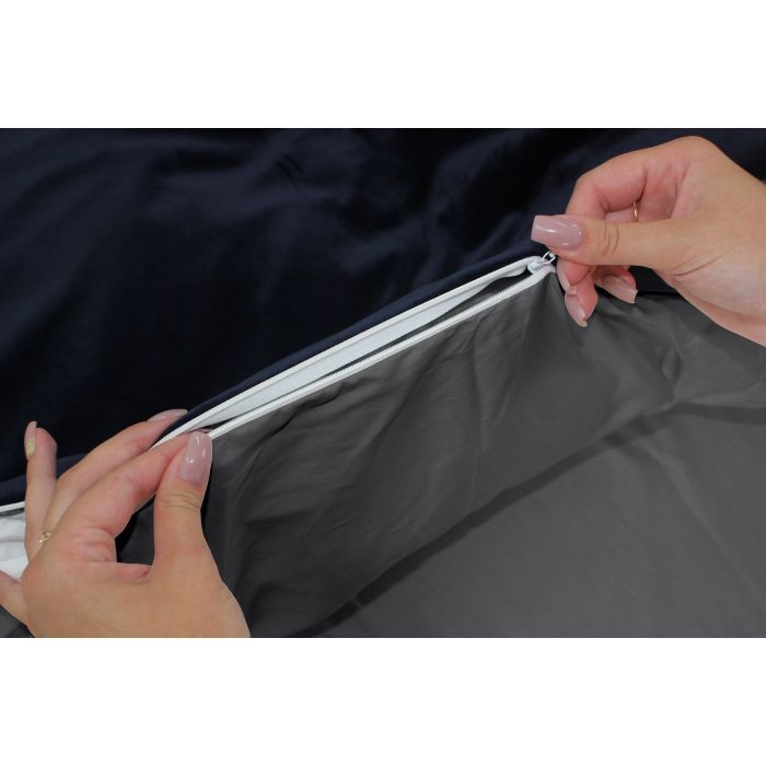 полуторный, Простынь - 140 х 200 + 25 см, сатин, велюр, однотонные модели, пододеяльник на молнии, простынь на резинке, синий с серым