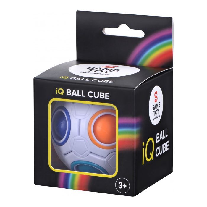 IQ Ball Cube - игрушка-головоломка в виде пластикового мячика c 11 меньшими по размеру разноцветными шариками внутри и 12 отверстиями, 11 из которых обозначено цветом, соответствующим меньшим шарикам. Задача головоломки - расположить каждый маленький шарик в месте, соответствующем по цвету. По принципу игра напоминает «пятнашки», ведь есть свободное отверстие, благодаря которому и можно перемещать другие шарики внутри мячика. IQ Ball Cube удобно держать и в одной руке, диаметр 8 см.