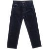 Боковая линия бедра расширена, к низу штаны зауженные. Сзади - два врезных кармана с пуговицами. Имеются шлёвки для ремня. В поясе, с внутренней стороны, вставлена резинка с пуговицей для регулировки объема талии, которая обеспечит не только максимальное удобство и комфорт, но и оптимальную посадку по фигуре. Застёгиваются штаны на молнию и пуговицу.